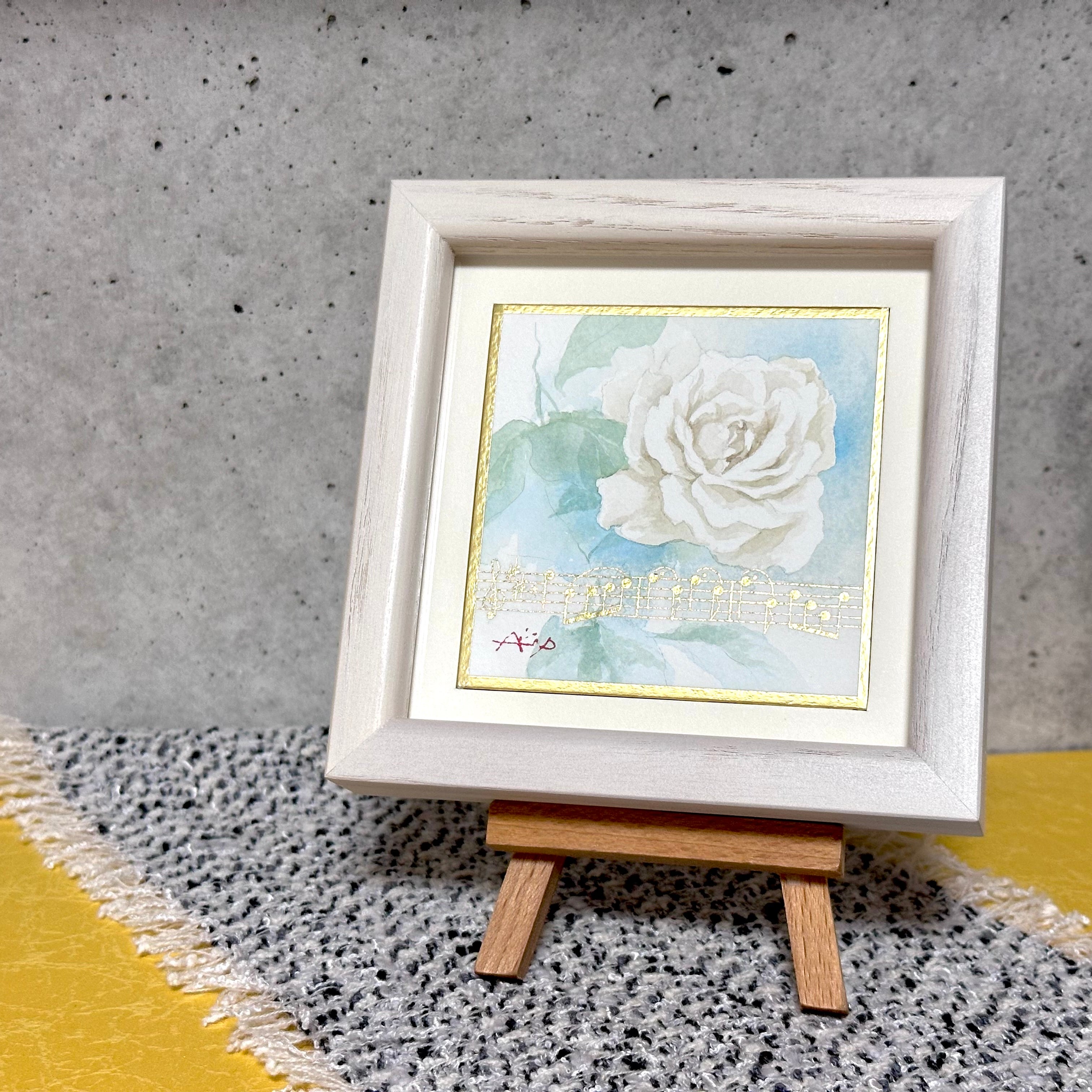 彩譜SaiFuは、7.5cmの正方形の水彩色紙に描かれた水彩画と、クラシック音楽の楽譜を截金(きりかね)という伝統技法で描いた作品です。